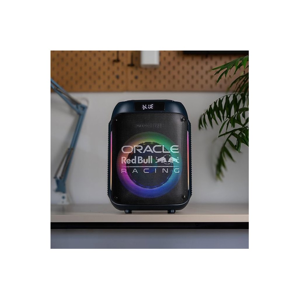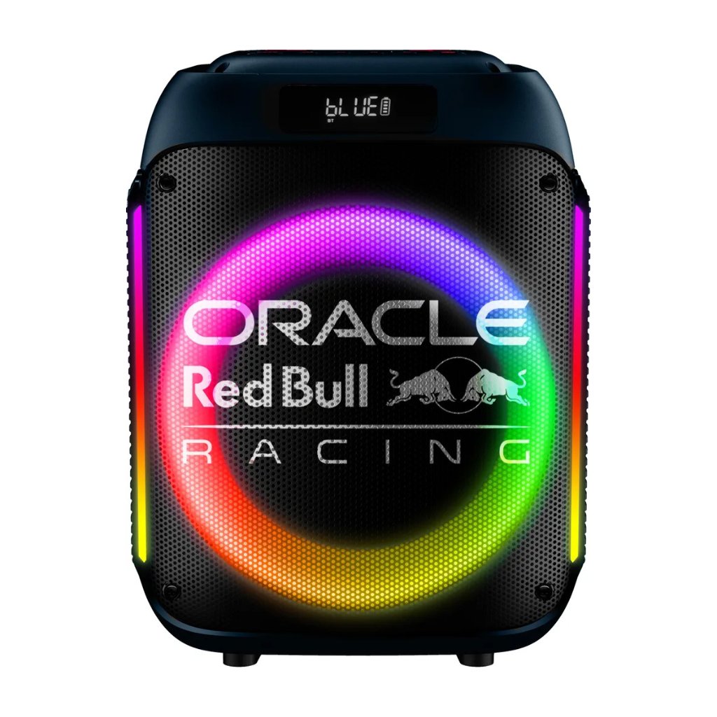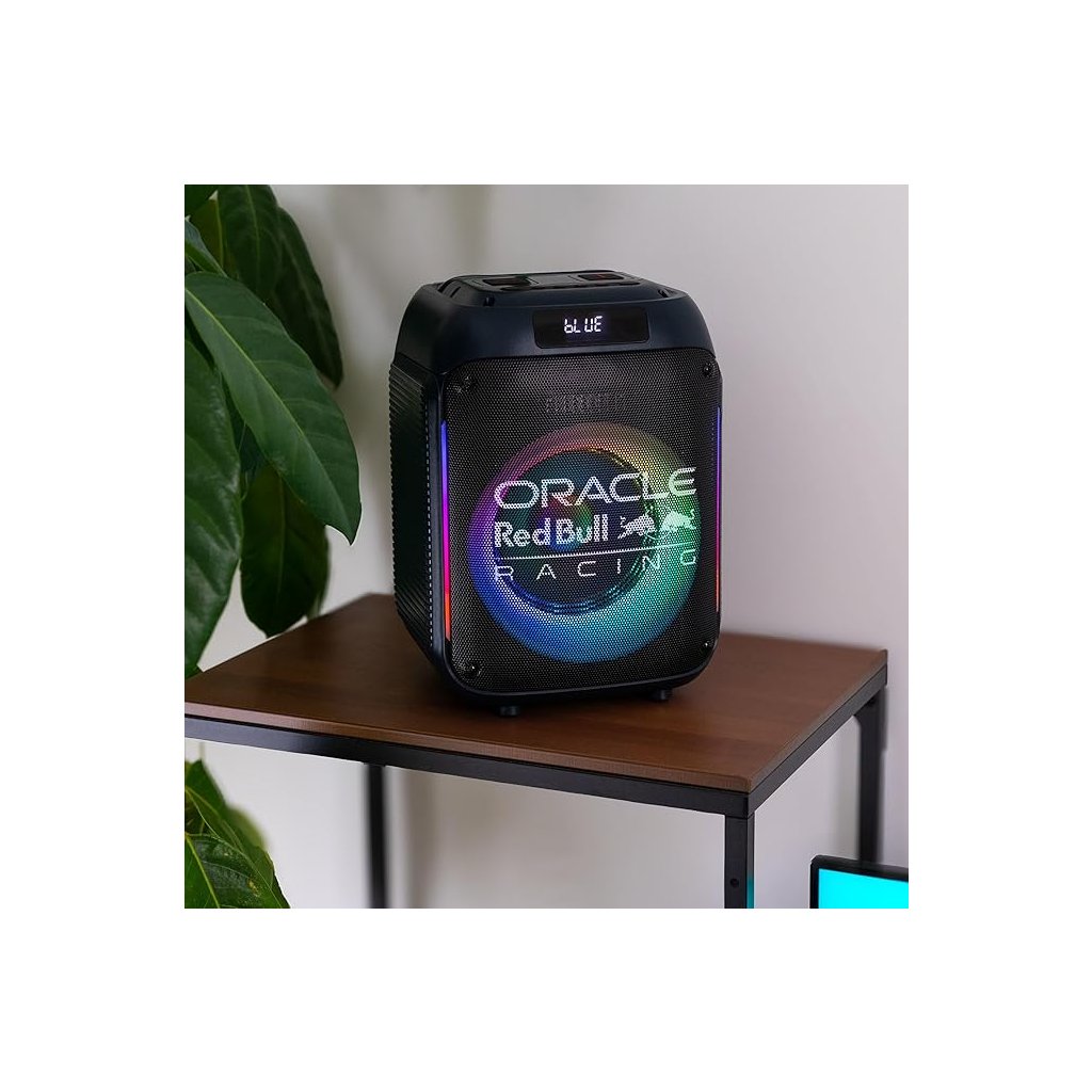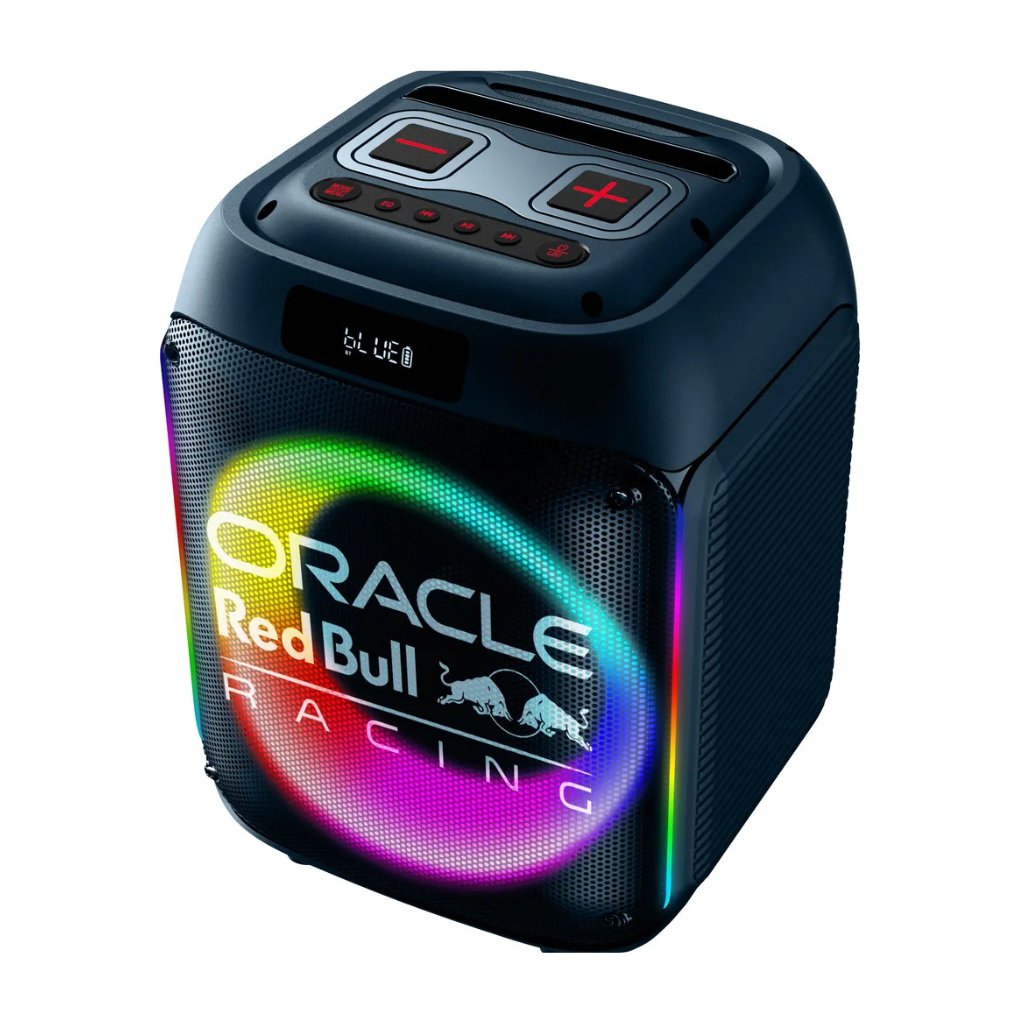 S tímto oficiálním reproduktorem Oracle Red Bull Racing přivedeš adrenalin závodního světa přímo na svou párty. Výkonný zvuk a LED osvětlení vytvoří atmosféru, jako bys byl v paddocku těsně před startem.